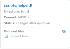 Section titled “Relevant Files”Issue cards can expose a Relevant files section.