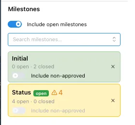 Section titled “Include Non-Approved”If a milestone contains unapproved issues, its card includes an Include non-approved toggle.