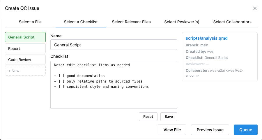 Section titled “Select a Checklist”This tab attaches the checklist template used for the QC.