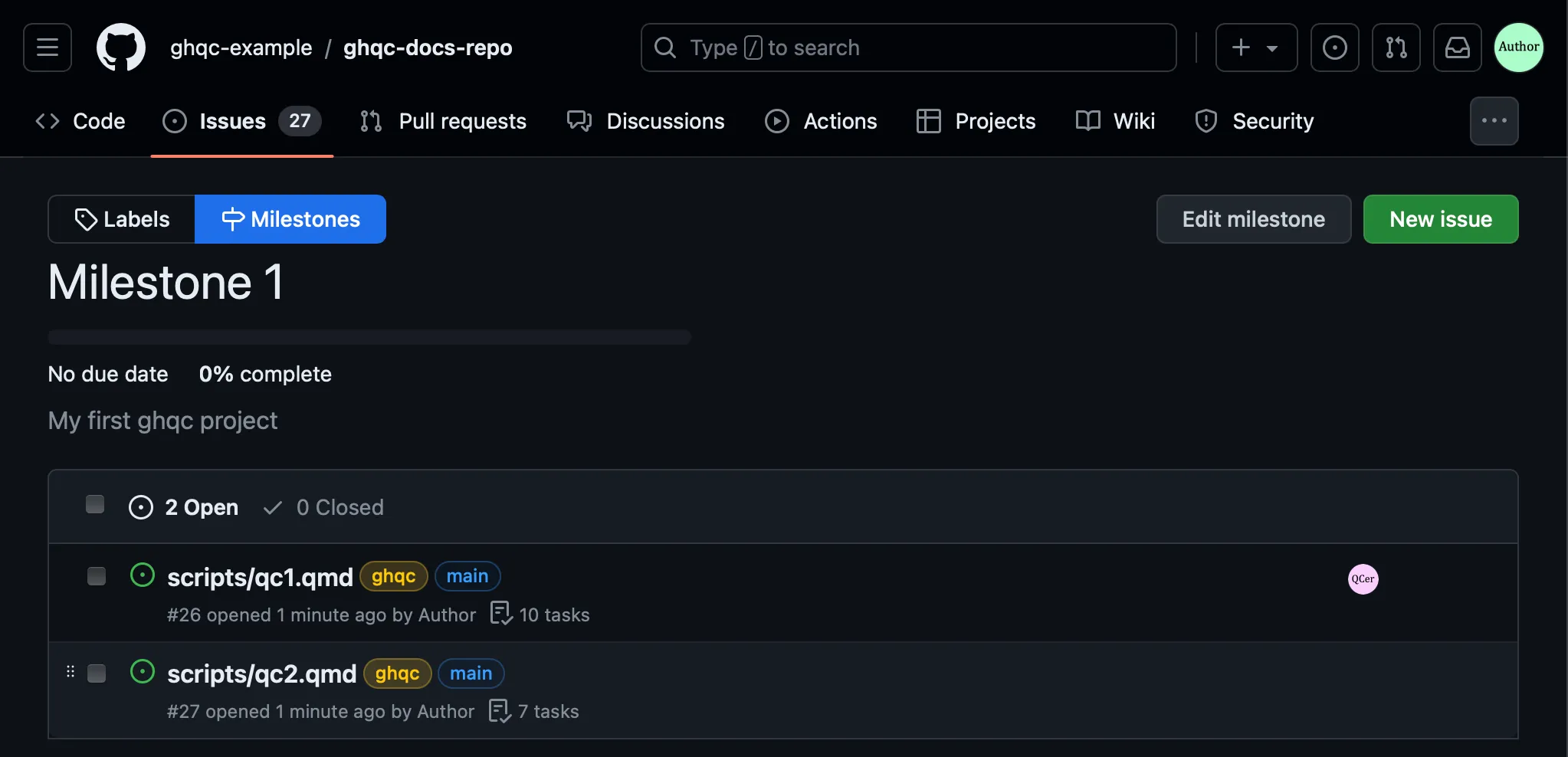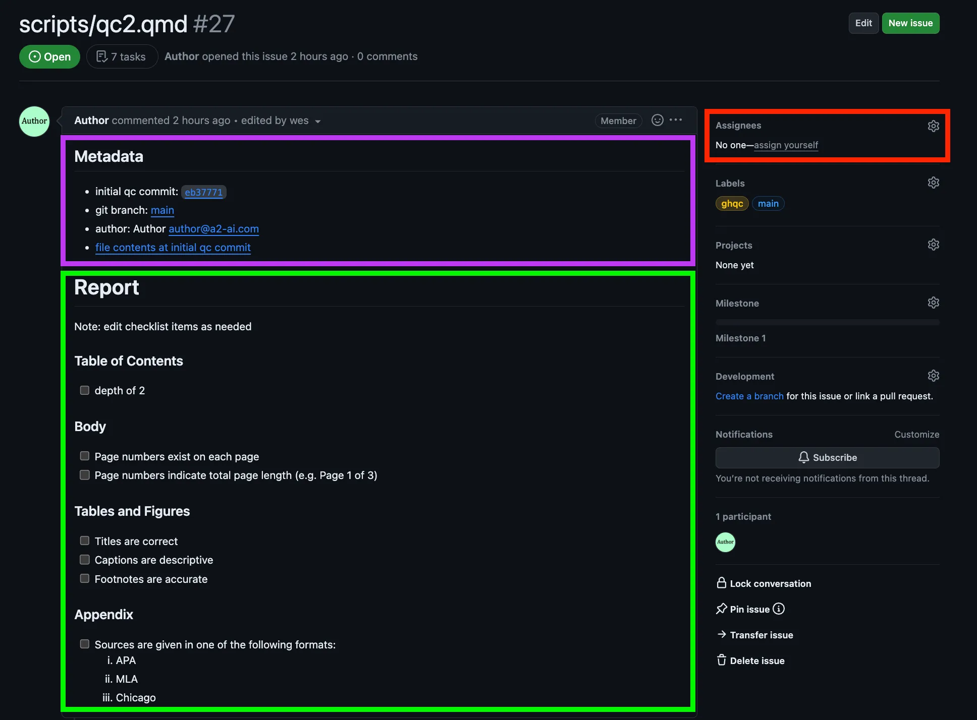 Let’s take a moment to familiarize ourselves with the Issue created by ghqc.